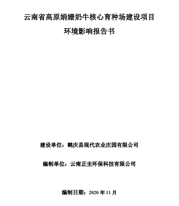 云南省高原娟珊奶牛核心育種場(chǎng)建設(shè)項(xiàng)目環(huán)境影響報(bào)告書